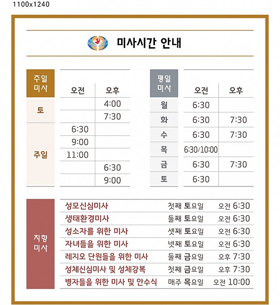 2026년 설 연휴 미사 안내