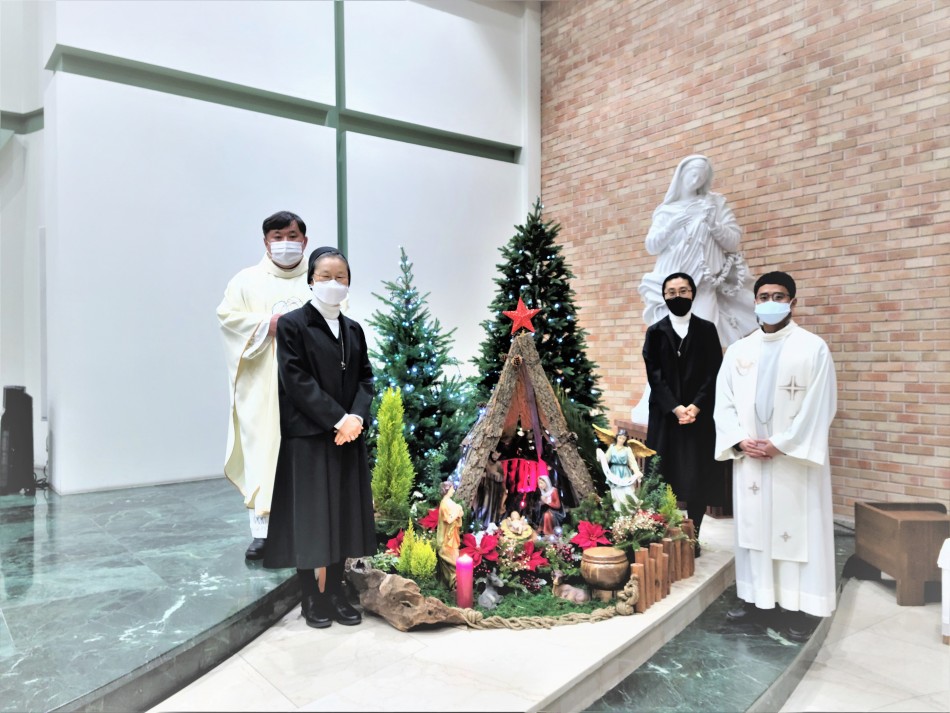 성탄대축일 전야미사 후 노형성당 사목자들의 마음을 전합니다.