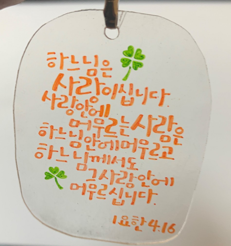오늘 독서 말씀을 캘리그라피(그림 문자)로 선물 받은 적이 있습니다. 선물을 받고서, 아무 생각 없이 말씀을 보다가 사랑사람의 글씨가 비슷하다는 것을 깨달을 수 있었습니다. 그러면서 문득 사람사랑의 글씨가 비슷한 것처럼, ‘사람사랑의 모습을 가지고 있음을 생각해 볼 수 있었습니다.